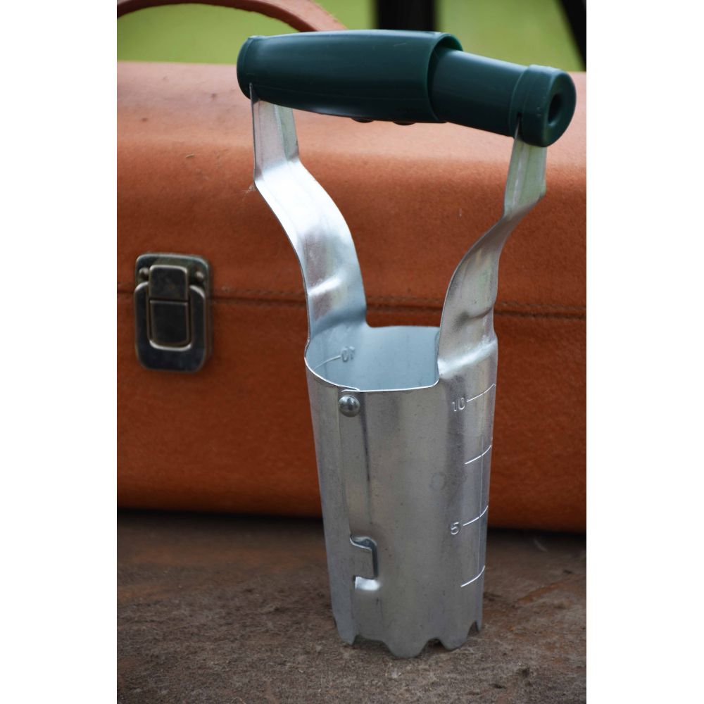 Sadzarka wyposażona w miarkę umożliwiającą wykonanie otworu dostosowanego do wielkości sadzonych cebulek (możliwość regulacji do 10 cm).