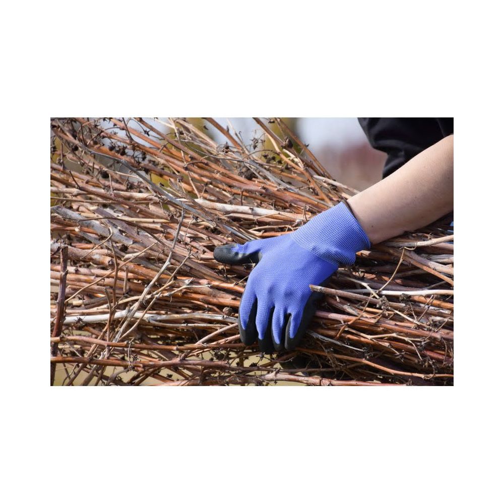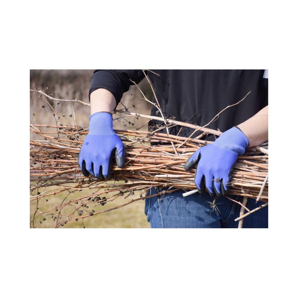 Rękawiczki ogrodowe w kolorze niebieskim zostały zaprojektowane z myślą o ochronie najbardziej pracowitych rąk w ogrodzie. Część zewnętrzna została wzmocniona trwałym elastycznym tworzywem dzięki czemu rękawiczki nie przepuszczają wody oraz brudu do wnętrza. Rozciągliwy kołnierzyk dopasowuje się do każdego rodzaju nadgarstka skutecznie chroniąc dłoń przed uszkodzeniami. Zdecydowania obowiązkowa pozycja w garderobie ogrodniczej !