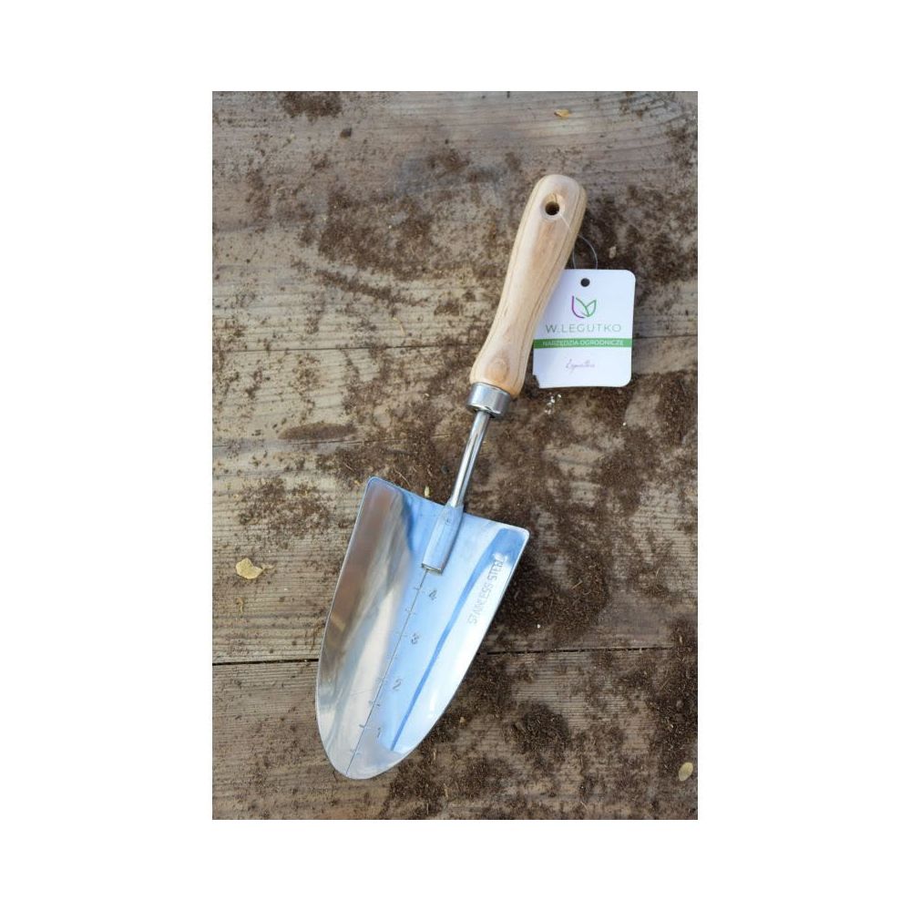 Łopatka ogrodowa z miarką to narzędzie z wysokiej jakości stali nierdzewnej. Drewniany uchwyt zapewnia stabilne trzymanie narzędzia w czasie pracy. Łopatka przeznaczona do sadzenia i pielęgnacji roślin, zarówno w domu, na balkonie jak i ogrodzie. Dzięki miarce bez problemu posadzisz rośliny na odpowiednią głębokość.