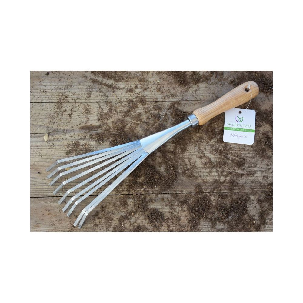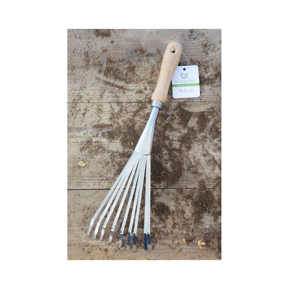 Uniwersalne narzędzie ogrodnicze, niezbędne na każdej działce. Miotło-grabki doskonale sprawdzą się przy grabieniu przestrzeni między roślinami. Wykonane zostały ze stali nierdzewnej, zakończone drewnianą rączką.