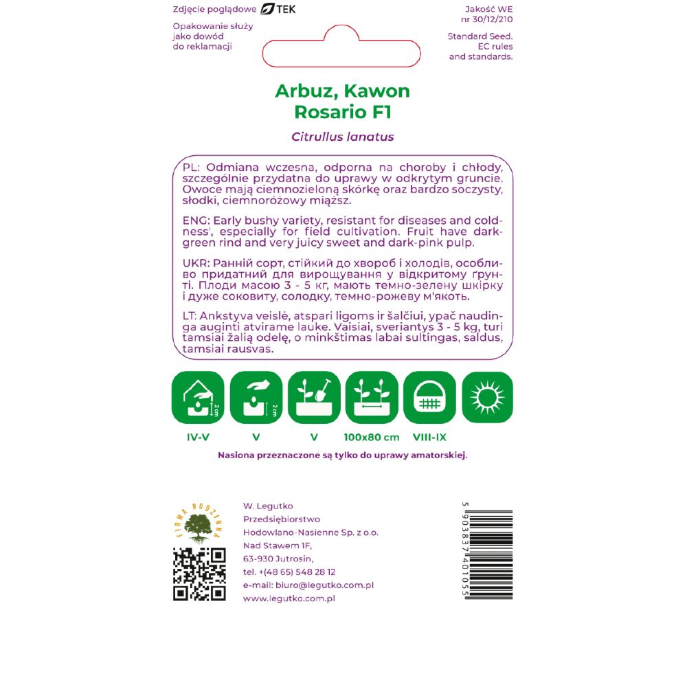 Arbuz - Citrullus lanatus - Rosario F1 - - czerwony - 1.00g