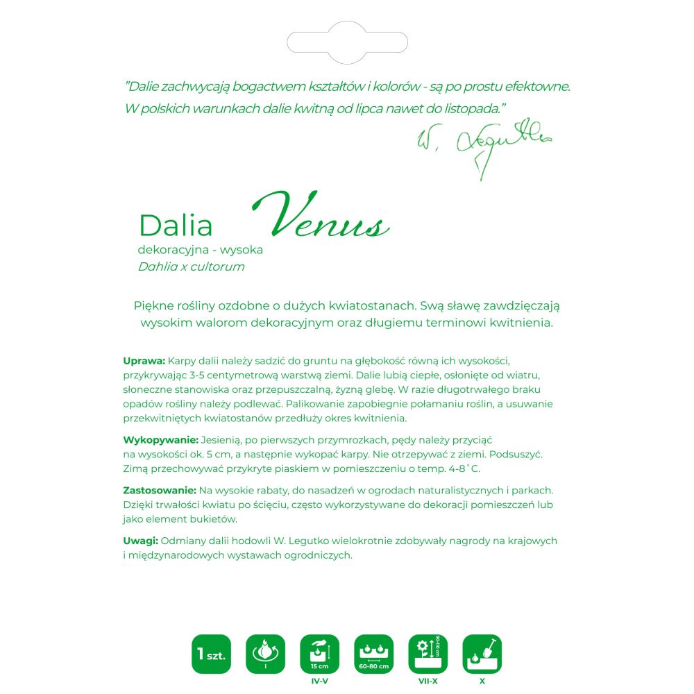 Uwagi: Odmiany dalii hodowli W. Legutko były wielokrotnie nagradzane na krajowych i międzynarodowych wystawach ogrodniczych.