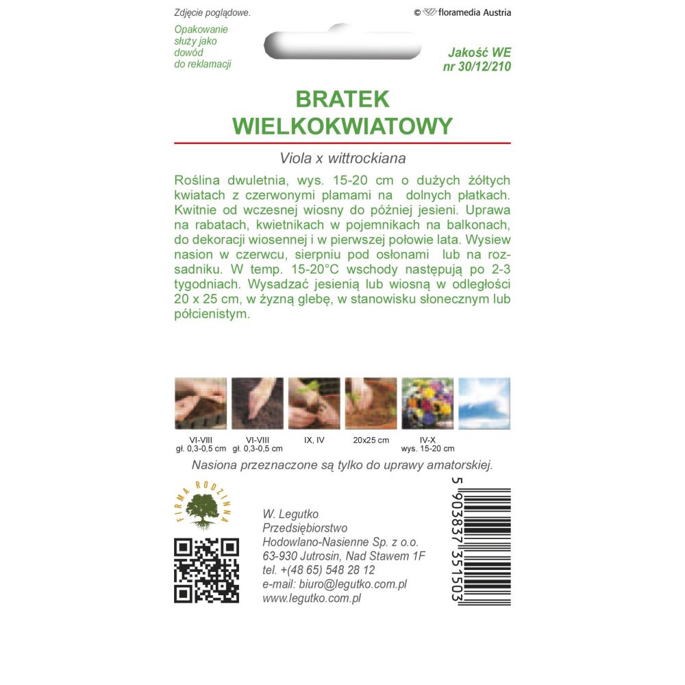 Bratek wielkokwiatowy - Viola x wittrockiana - Early Yellow Red Blotch - żółty - 0.40g