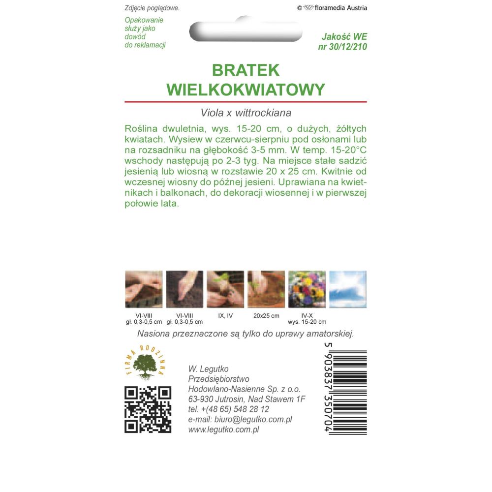 Roślina dwuletnia. Wysiew w czerwcu-sierpniu pod osłonami lub na rozsadniku na głębokość 35 mm. Nasiona bratków kiełkują w ciemności, konieczne jest więc cieniowanie obsianej powierzchni papierem lub gęstą włókniną. Wschody następują po 2-3 tyg. Na miejsce stałe sadzić jesienią lub wiosną w rozstawie 20-25 cm. Kwitnie od wczesnej wiosny do późnej jesieni. Uprawiana na kwietnikach i balkonach, do dekoracji wiosennej i w pierwszej połowie lata.
