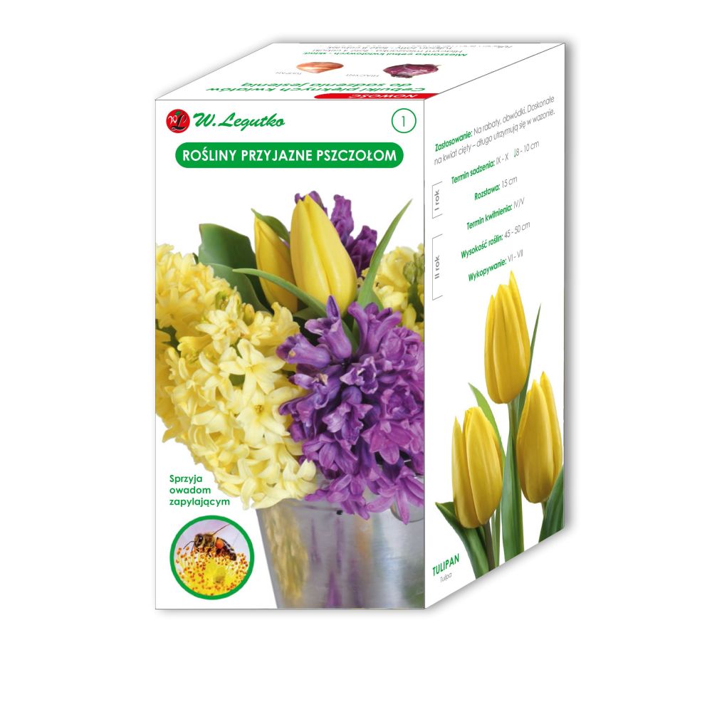 Rośliny przyjazne pszczołom - hiacynt fioletowopurpurowy (2 szt.), hiacynt żółty (2 szt.), tulipan żółty (8 szt.)