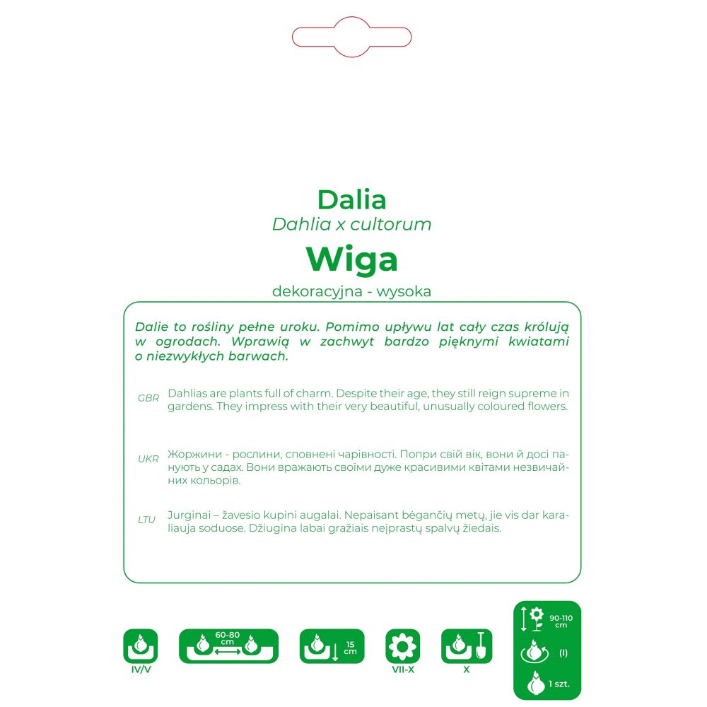 Uprawa: Karpy dalii należy sadzić do gruntu na głębokość równą ich wysokości, przykrywając 3-5 centymetrową warstwą ziemi. Dalie lubią ciepłe, osłonięte od wiatru, słoneczne stanowiska oraz przepuszczalną, żyzną glebę. W razie długotrwałego braku opadów rośliny należy podlewać. Palikowanie zapobiegnie połamaniu roślin, a usuwanie przekwitniętych kwiatostanów przedłuży okres kwitnienia.