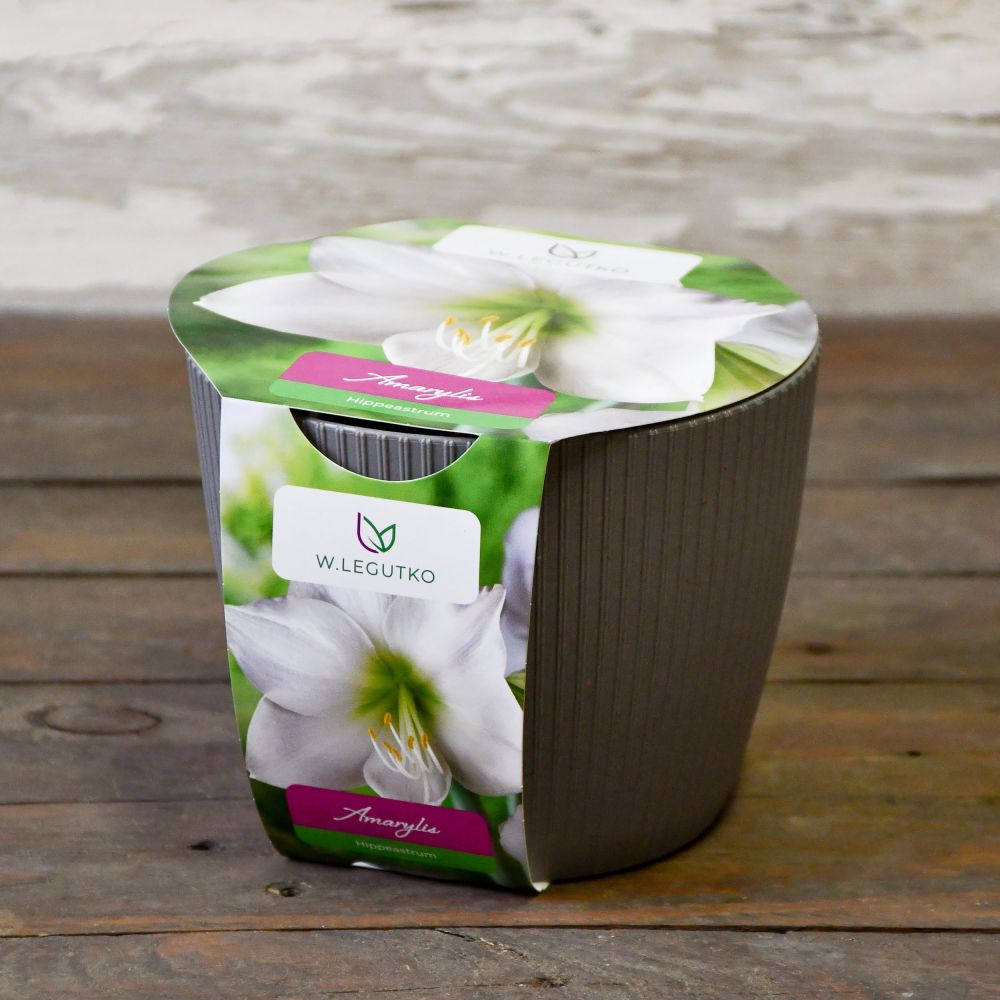 Amarylis biały w ozdobnej doniczce / doniczka losowa