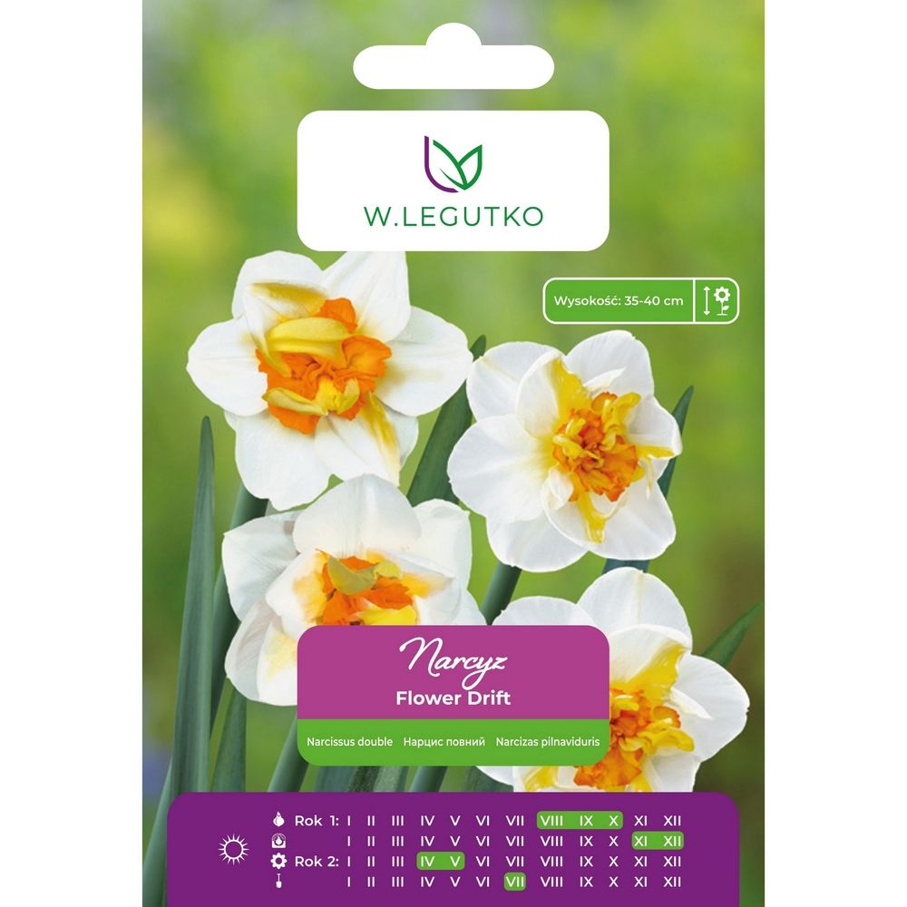 Narcyz - Narcissus - Flower Drift - biały z pomarańczowym środkiem - 4 szt.