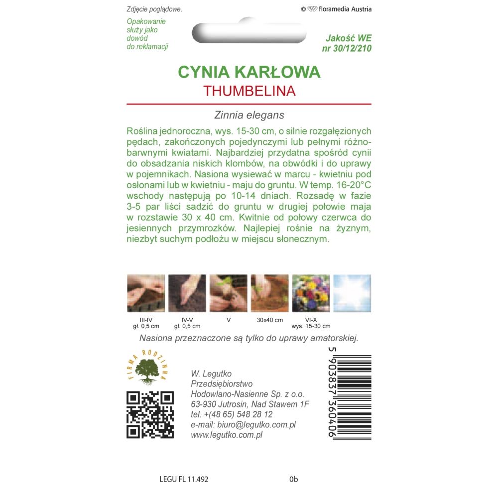Roślina jednoroczna, wys. 15-20 cm, o silnie rozgałęzionych pędach, zakończonych pojedynczymi lub pełnymi różnobarwnymi kwiatami. Najbardziej przydatna spośród cynii do obsadzania niskich klombów, na obwódki i do uprawy w pojemnikach. Nasiona wysiewać w kwitnieniu pod osłonami. W temp. 16-20°C wschody następują po 10-14 dniach. Rozsadę w fazie 3-5 par liści sadzić do gruntu w drugiej połowie maja. Kwitnie od połowy czerwca do jesiennych przymrozków. Najlepiej rośnie na żyznym, niezbyt suchym podłożu w miejscu słonecznym.