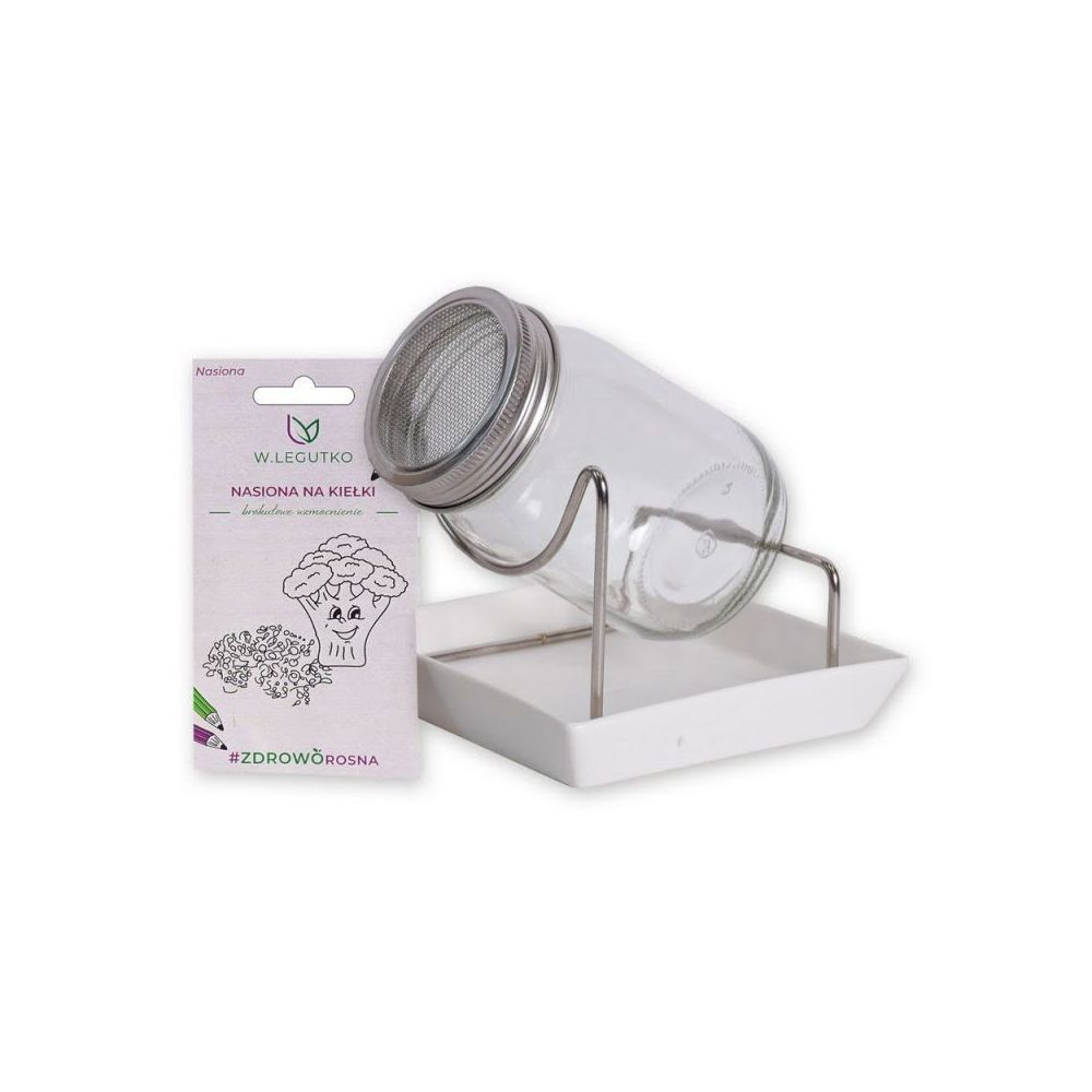 Zestaw z kiełkownicą słoikową pozwala uzyskać w łatwy i szybki sposób zdrowe kiełki w domowych warunkach. Wszystko czego klient potrzebuje znajduje się w tym zestawie!