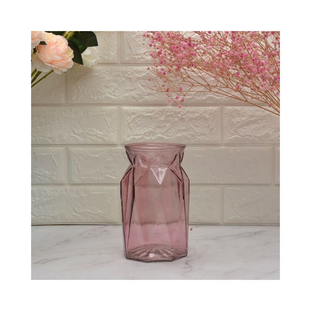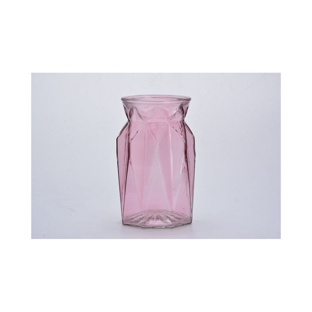 Szklany, różowy wazon w ciekawym kształcie będzie nie tylko efektowną dekoracją wnętrza, ale również pięknie wyeksponuje kwiaty cięte. Dzięki transparentnym ściankom możesz wykorzystać go również jako lampion. Nowoczesny design i nietuzinkowy kolor będzie pasował zarówno do nowoczesnych przestrzeni jak i do przytulnych, skandynawskich wnętrz. Wazon świetnie sprawdzi się również jako prezent.