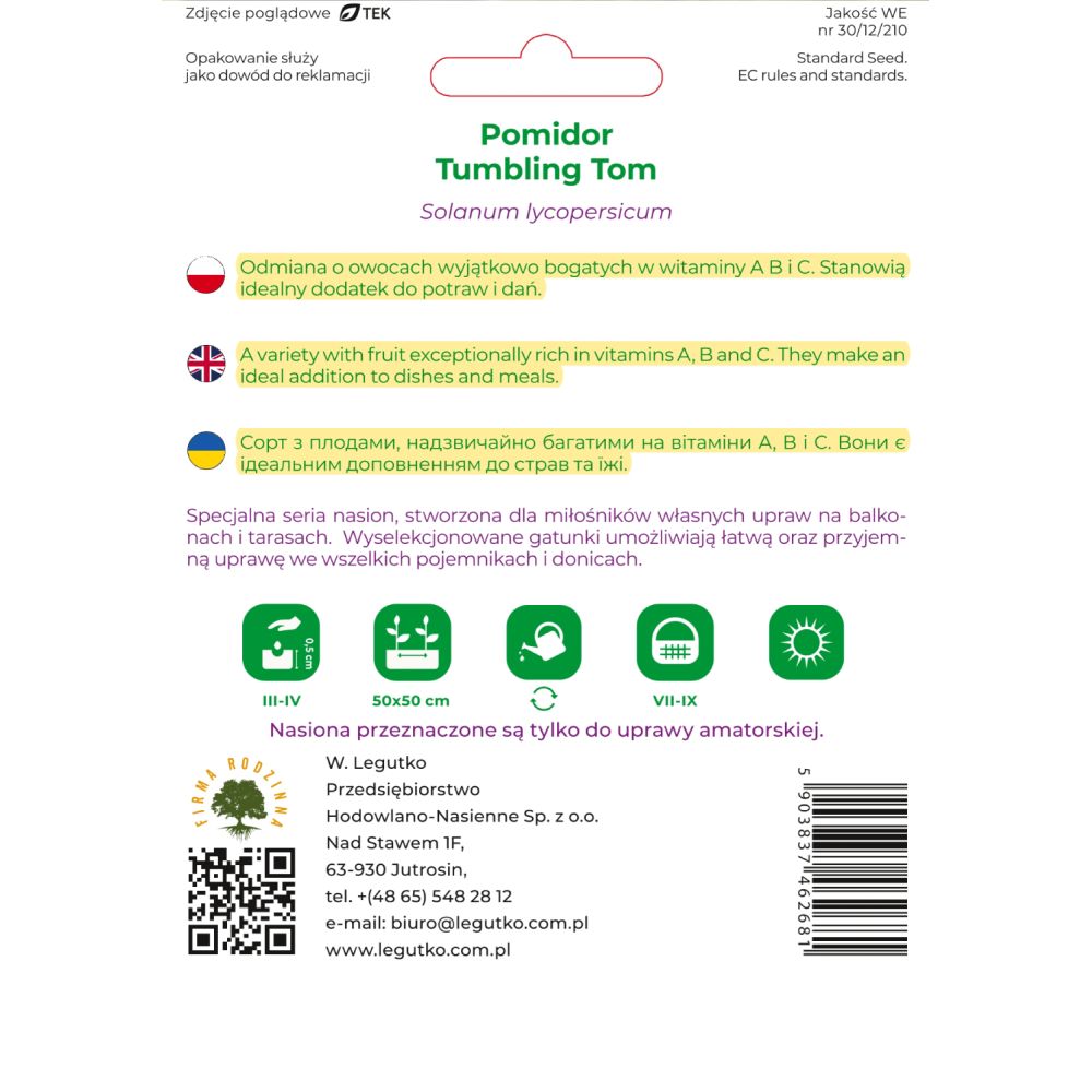 Pomidor gruntowy karłowy wiotkołodygowy Tumbling Tom - Solanum lycopersicum - mieszanka - opakowanie zawiera 0,2g nasion