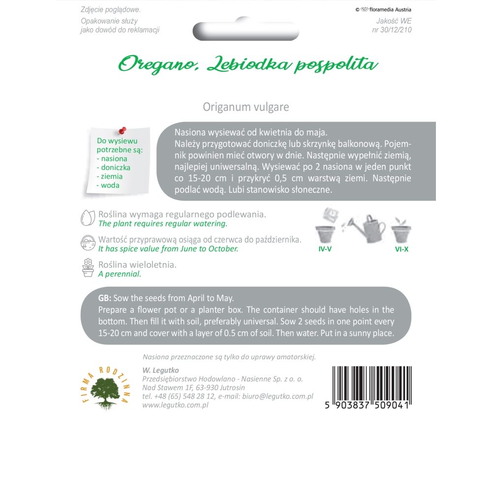 Oregano, Lebiodka pospolita 0.10g na balkon i taras