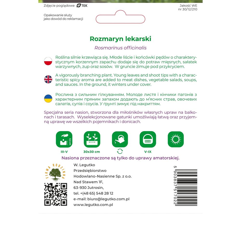 Rozmaryn lekarski 0.10g na balkon i taras