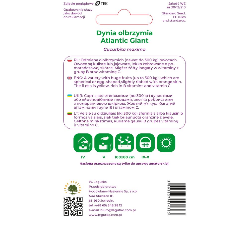 Dynia olbrzymia - Cucurbita maxima - Atlantic Giant - pomarańczowy - 3.00g