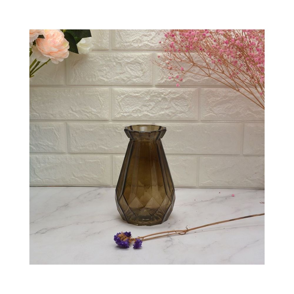 Szklany, brązowy wazon w ciekawym kształcie będzie nie tylko efektowną dekoracją wnętrza, ale również pięknie prezentować się w nim będą kwiaty cięte. Dzięki transparentnym ściankom wazon możesz wykorzystać również jako lampion. Jego nowoczesny design i uniwersalny kolor pasuje zarówno do nowoczesnych przestrzeni jak i do przytulnych, skandynawskich wnętrz. Wazon świetnie sprawdzi się również jako prezent.
