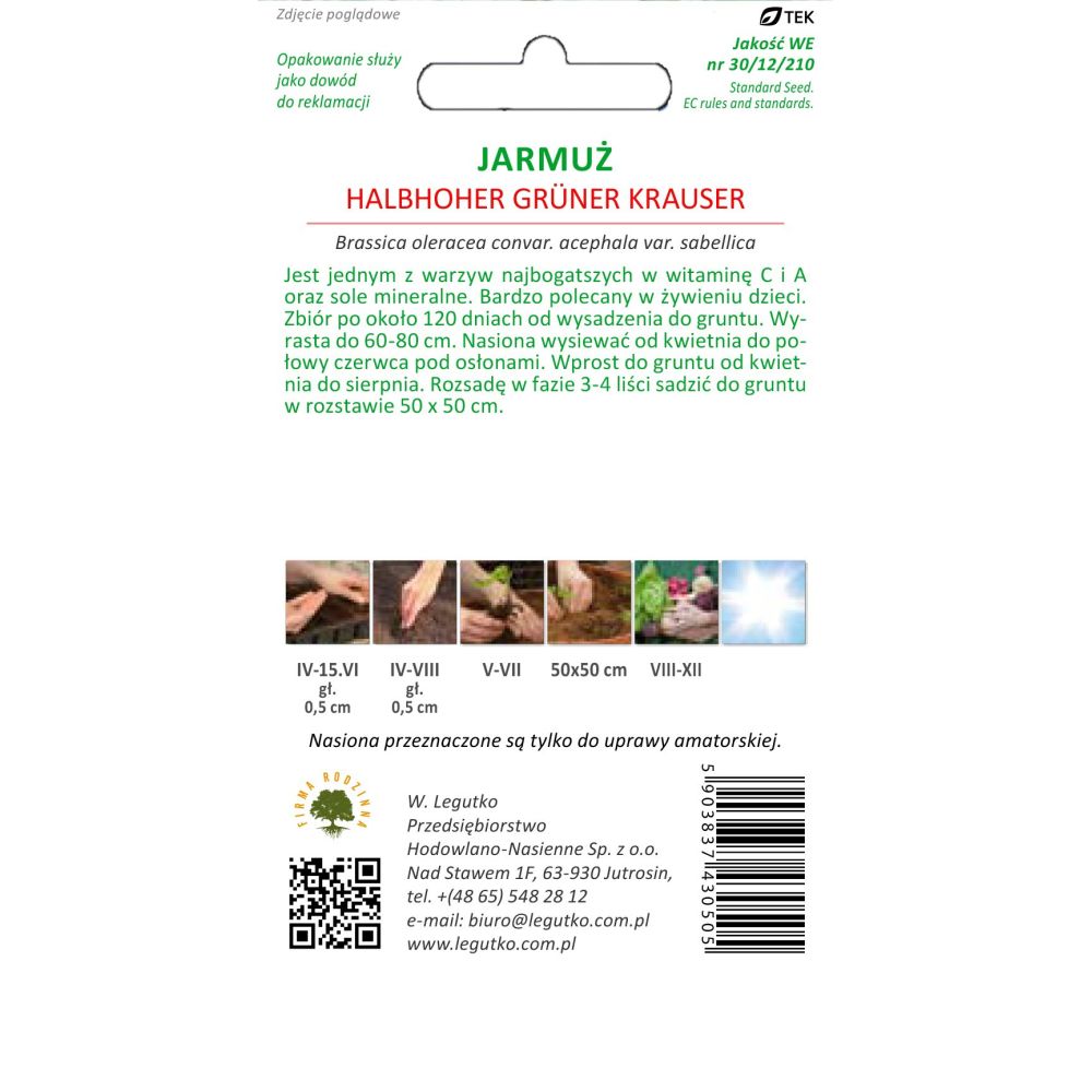 Jarmuż - Brassica oleracea convar. acephala var. sabellica - Halbhoher Grüner Krauser - zielony - 1.00g