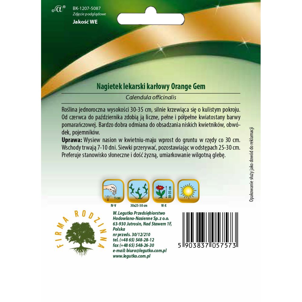 Nagietek lekarski - Calendula officinalis - Orange Gem - pomarańczowy - 2.00g