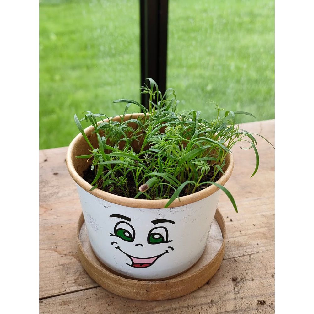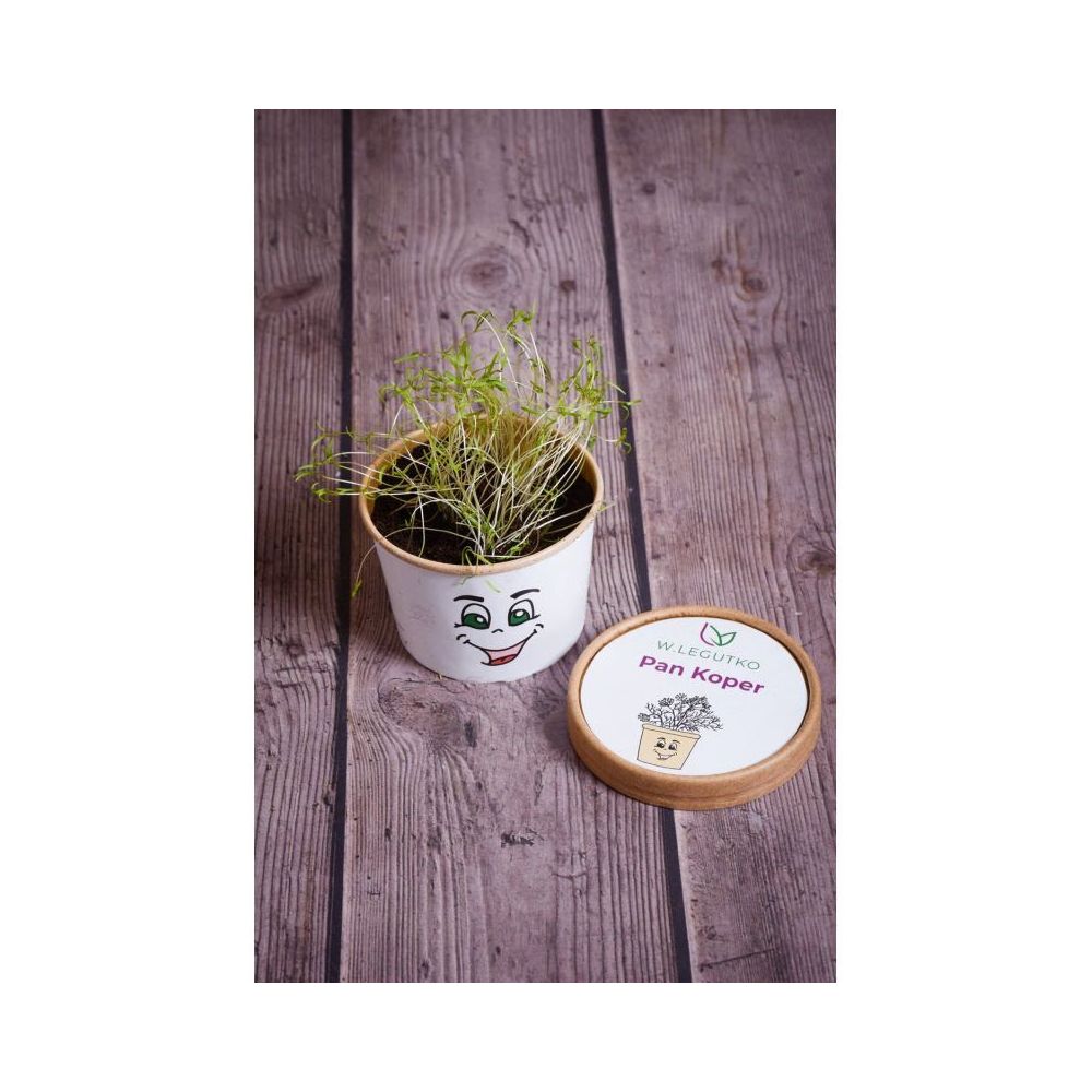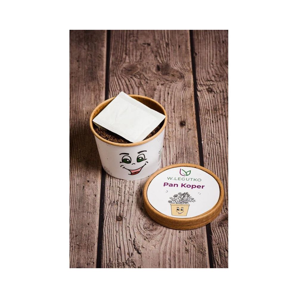 Papierowy kubeczek z ziemią i nasionami jest niewielkich wymiarach, dlatego znajdzie on miejsce w każdym domu. Przyciąga uwagę swoją z radosną miną.