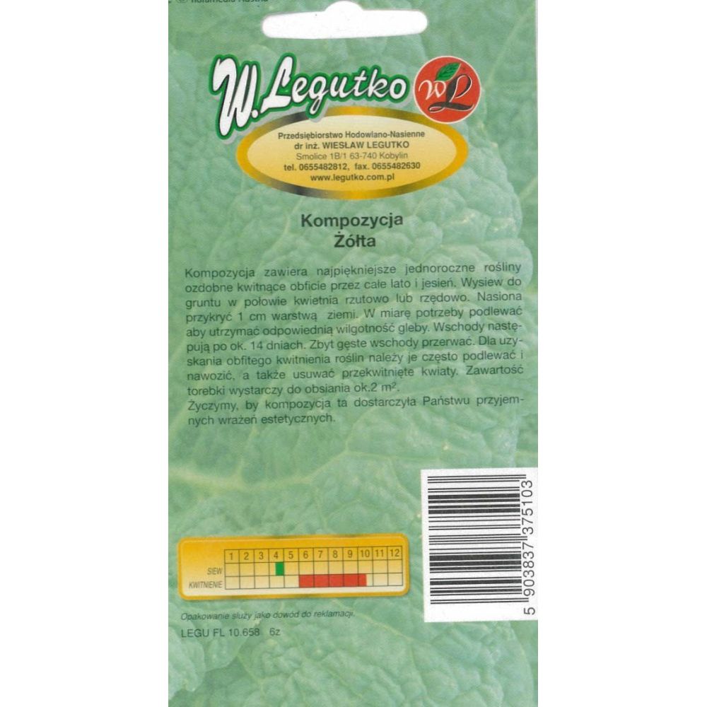 Kompozycja zawiera najpiękniejsze jednoroczne rośliny ozdobne kwitnące obficie przez całe lato i jesień. Wysiew do gruntu w połowie kwietnia rzutowo lub rzędowo. Nasiona przykryć 1 cm warstwą ziemi. W miarę potrzeby podlewać aby utrzymać odpowiednią wilgotność gleby. Wschody następują po ok. 14 dniach. Zbyt gęste wschody przerwać. Dla uzyskania obfitego kwitnienia roślin należy je często podlewać i nawozić, a także usuwać przekwitnięte kwiaty. Zawartość torebki wystarcza do obsadzania ok. 2 m². Życzymy, by kompozycja ta dostarczyła Państwu przyjemnych wrażeń estetycznych.