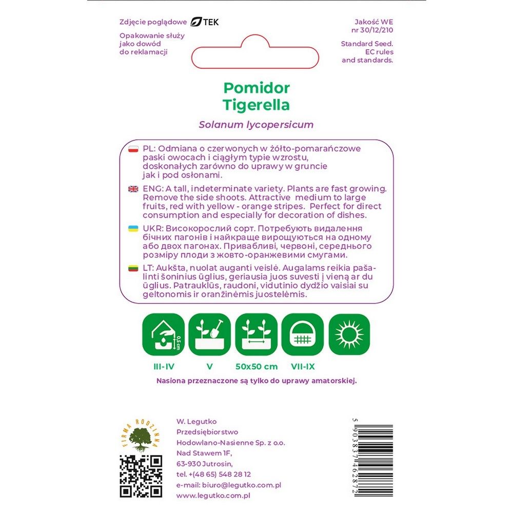 Pomidor gruntowy wysoki Tigerella - Solanum lycopersicum - czerwony - opakowanie zawiera 0,2g nasion