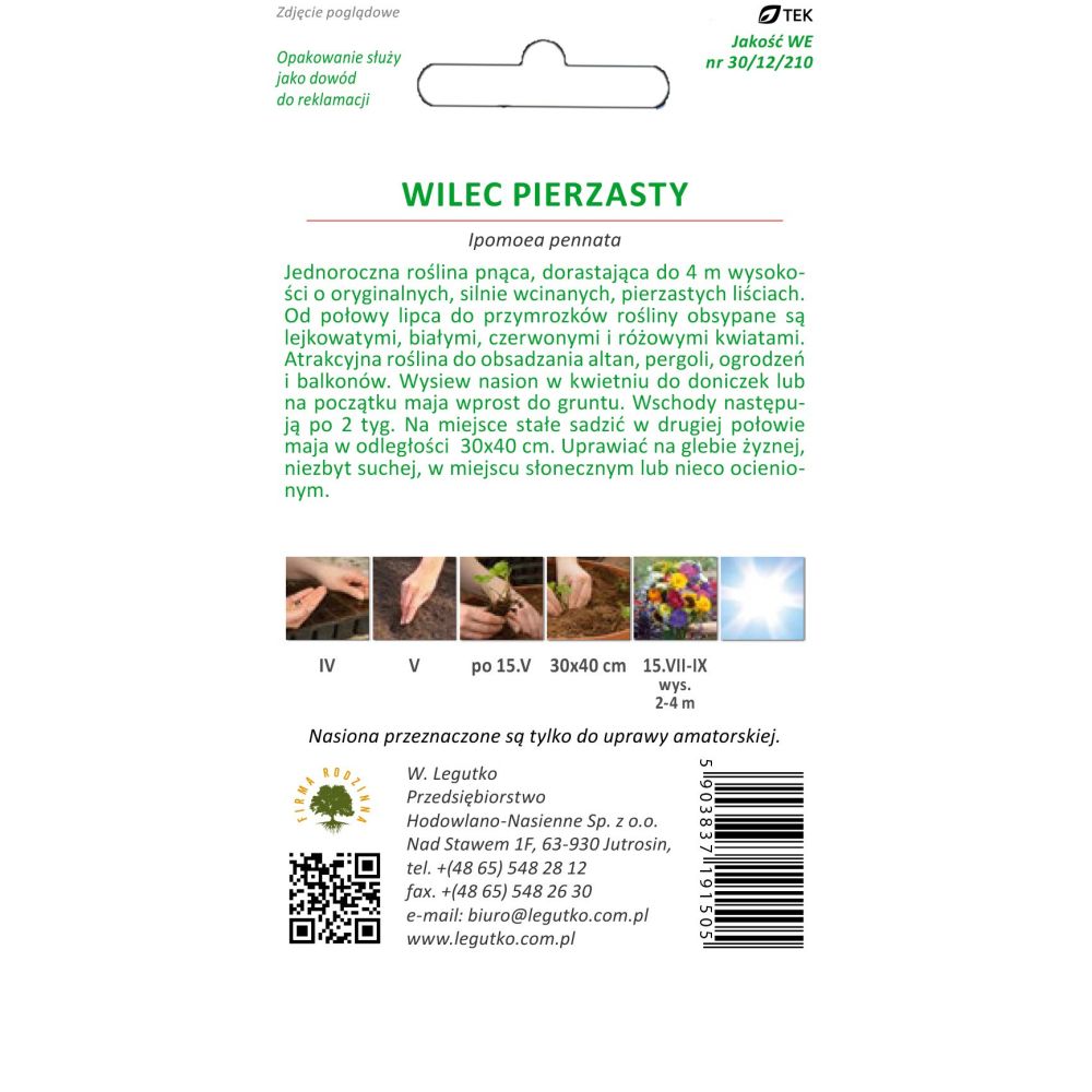 Jednoroczna roślina pnąca, dorastająca do 4 m o oryginalnych, silnie wcinanych pierzastych liściach. Od połowy lipca do przymrozków rośliny obsypane są lejkowatymi, białymi, czerwonymi i różowymi kwiatami. Atrakcyjna roślina do obsadzania altan, pergoli, ogrodzeń i balkonów. Wysiew nasion w kwietniu do doniczek lub na początku maja wprost do gruntu. Wschody następują po 2 tygodniach. Na miejsce stałe sadzi w drugiej połowie maja w odległości 60-60 cm. Uprawiać na glebie żyznej niezbyt suchej, w miejscu słonecznym lub nieco ocienionym.