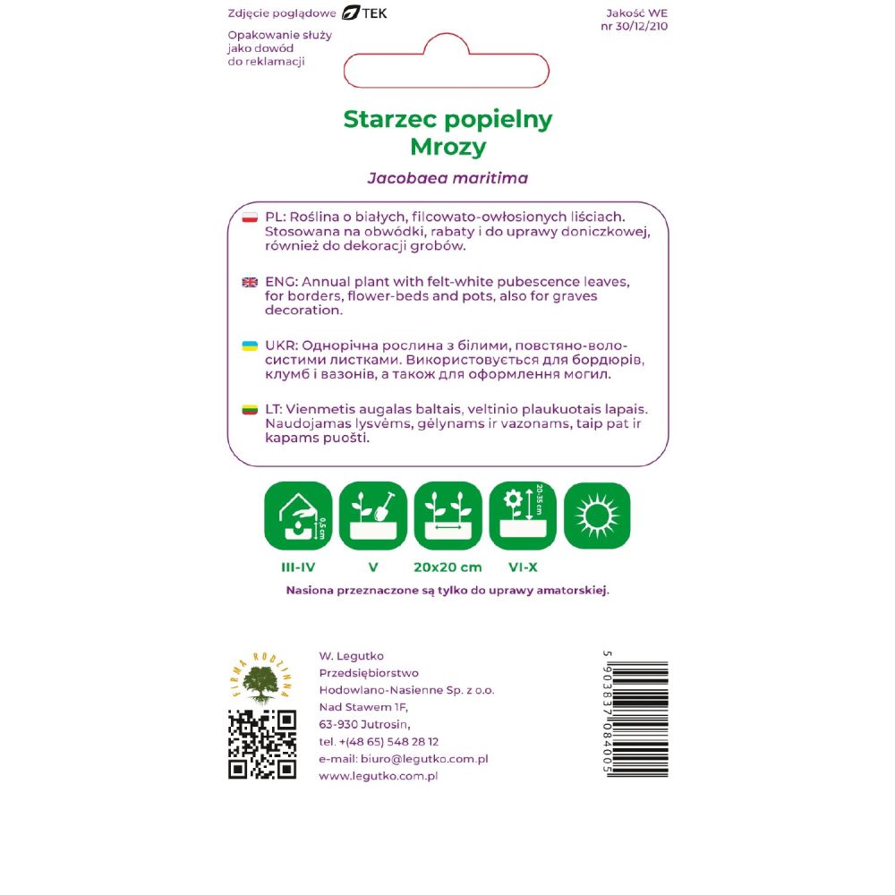 Starzec popielny, Mrozy - Cineraria maritima - biały - 0.20g