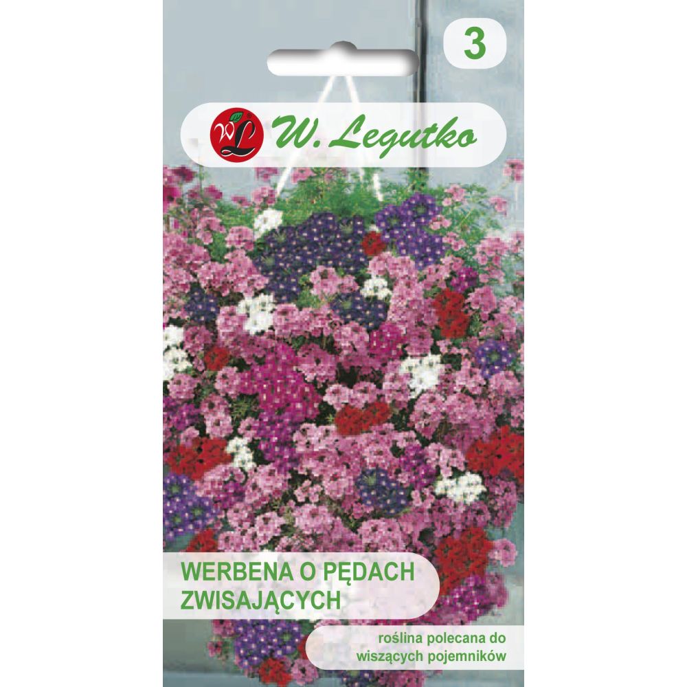 Roślina jednoroczna wytwarzająca liczne zwisające pędy, na których od czerwca do października pojawiają się w dużej ilości w odcieniach różowe, czerwone, wiśniowo fioletowe oraz białe kwiaty. Nasiona wysiewać w marcu do skrzynek. W temp. ok 25°C wschody następują po 3 tygodniach. Młode rośliny rozpikować w rozstawie 5x5 cm. Na miejsce stałe sadzić w maju w odległości 15-20 cm. Zastosowanie: do obsadzania pojemników, koszy wiszących, skrzynek balkonowych, a także do uprawy w gruncie jako roślina dywanowa.