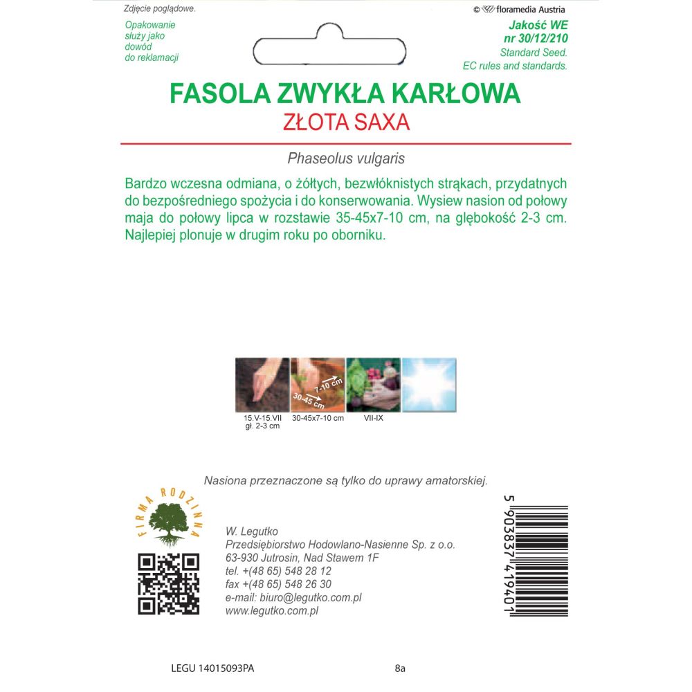 Fasola zwykła - Phaseolus vulgaris var. nanus - Złota Saxa - żółty - 40.00g