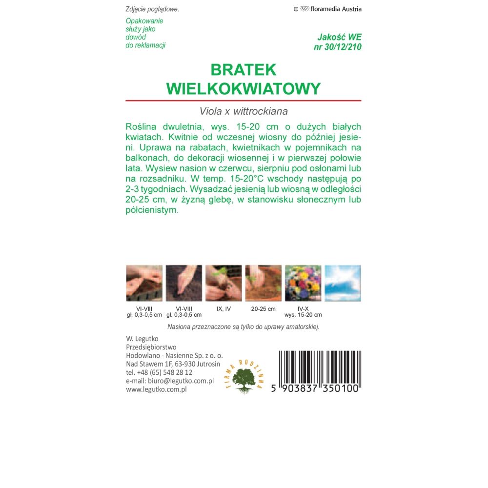 Bratek wielkokwiatowy - Viola x wittrockiana - Firnenschnee - biały - 0.50g