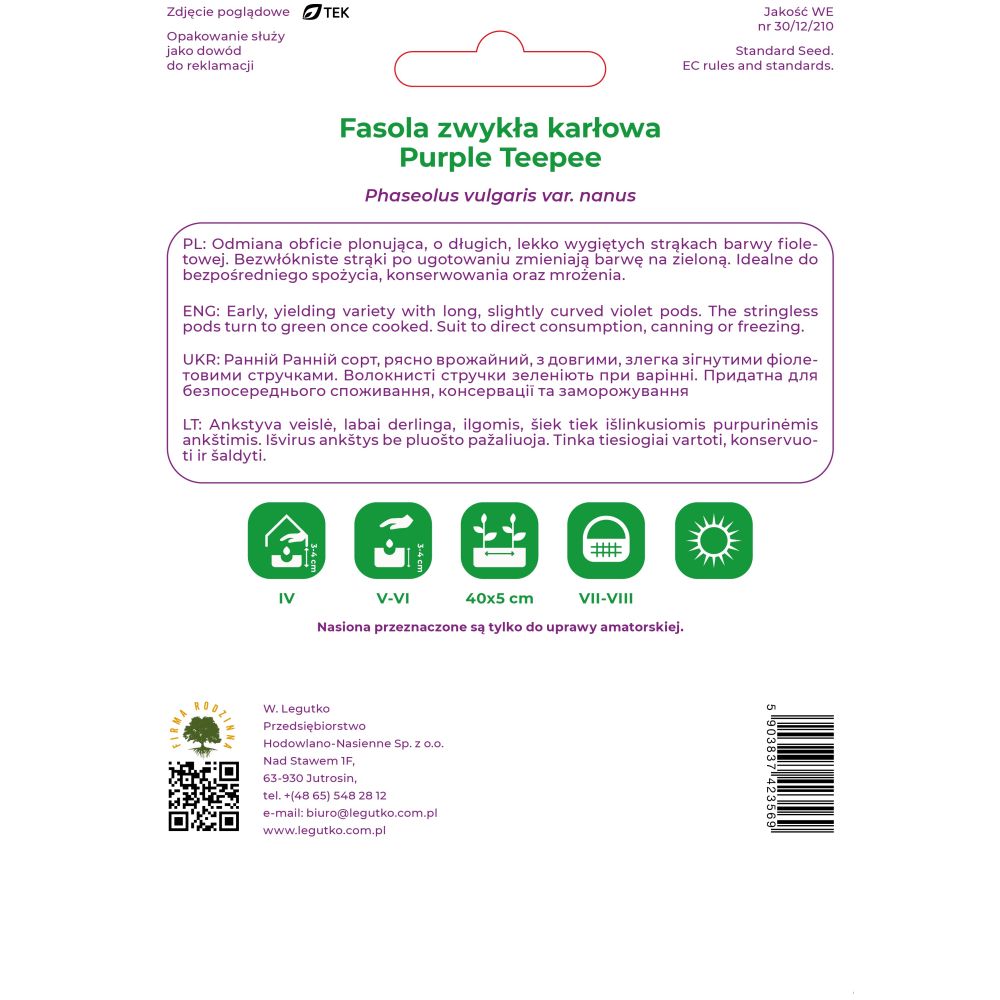 Fasola zwykła - Phaseolus vulgaris var. nanus - Purple Teepee - fioletowe - 30.00+10.00g