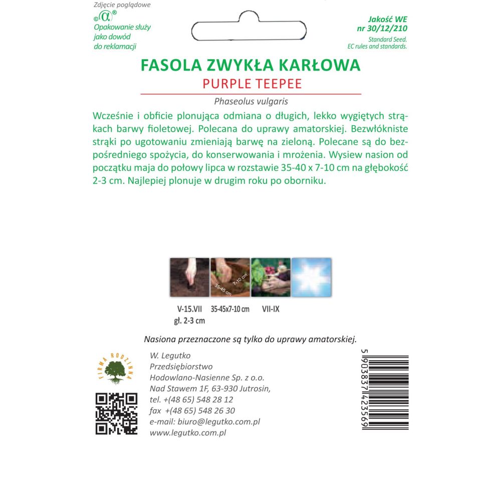 Wcześnie i obficie plonująca odmiana o długich, lekko wygiętych strąkach barwy fioletowej. Polecana do uprawy amatorskiej. Bezwłókniste strąki po ugotowaniu zmieniają barwę na zieloną. Polecane są do bezpośredniego spożycia, do konserwowania i mrożenia. Wysiew nasion od początku maja do połowy lipca w rozstawie 35-40 x 7-10 cm na głębokość 2-3 cm. Najlepiej planuje w drugim roku po oborniku.
