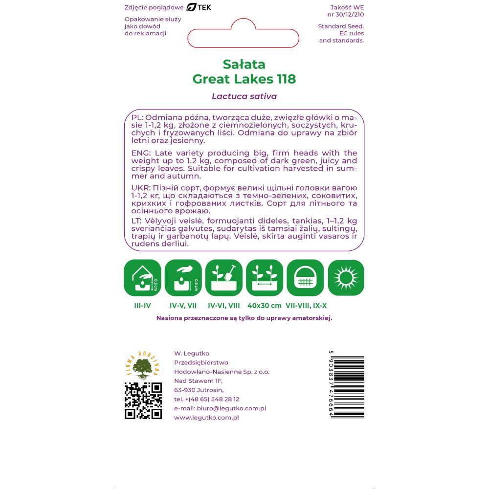 Sałata/Lactuca sativa/Great Lakes 118/zielone/1.00