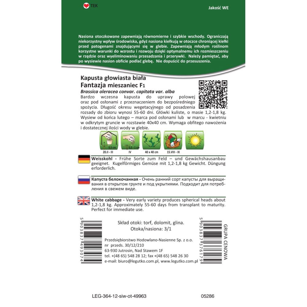 Otoczki - Kapusta głowiasta biała - Brassica oleracea convar. capitata var. alba - Fantazja F1 - 100szt.