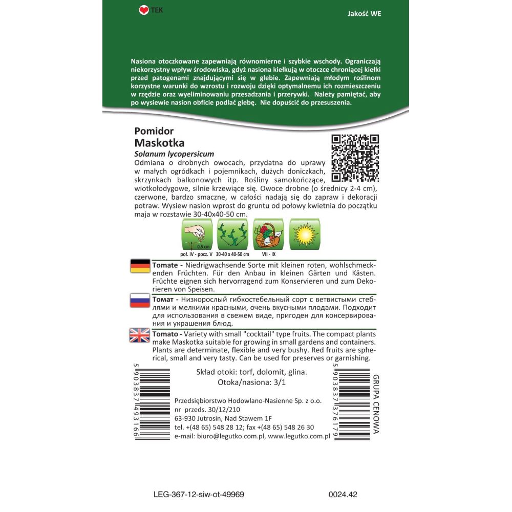 Pomidor gruntowy karłowy wiotkołodygowy Maskotka - Solanum lycopersicum - czerwony - opakowanie zawiera 100szt. nasion
