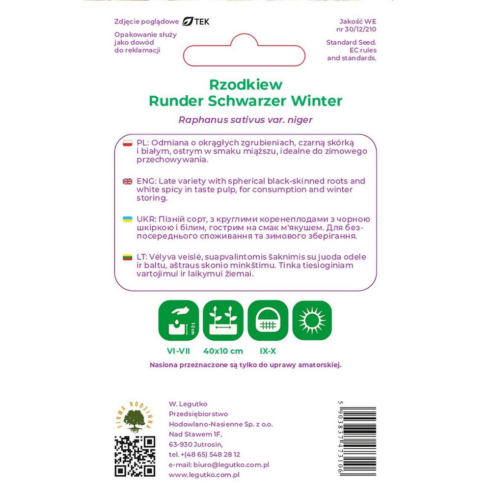 Rzodkiew - Raphanus sativus var. niger - Runder schwarzer Winter - czarny - 5.00+1.00g