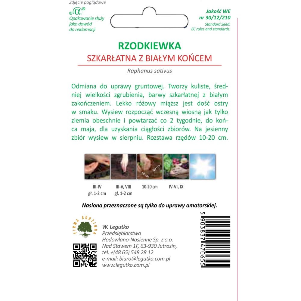 Rzodkiewka Szkarłatna z Białym Końcem - Raphanus sativus - 5.00g