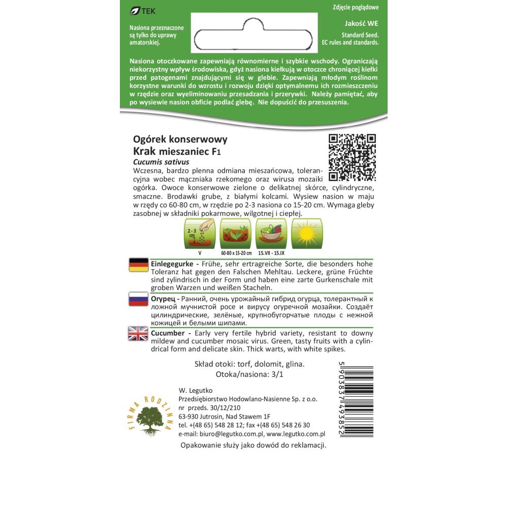 Otoczki - Ogórek - Cucumis sativus - Krak F1 - 50szt.