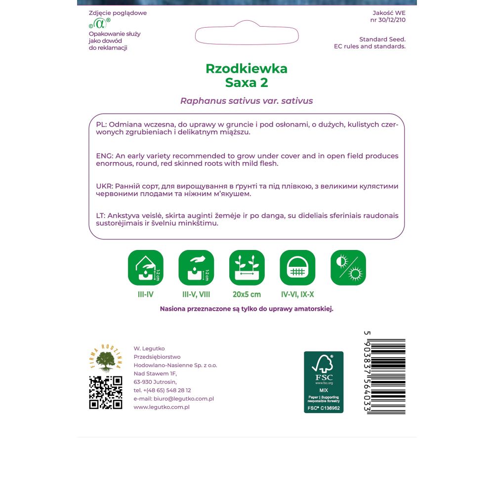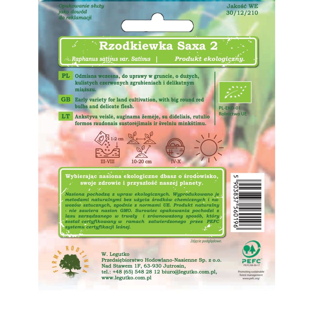 BIO - Rzodkiewka - Raphanus sativus var. sativus - Saxa 2 - czerwony - 5.00g -
