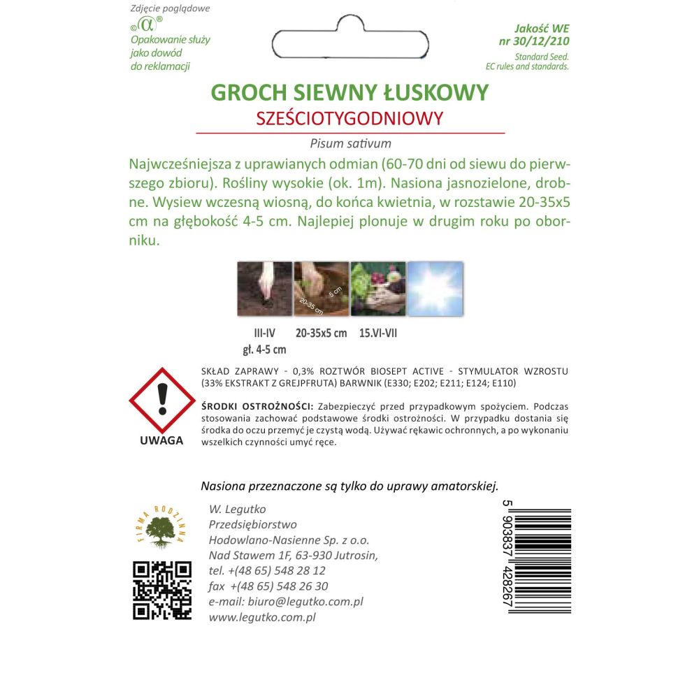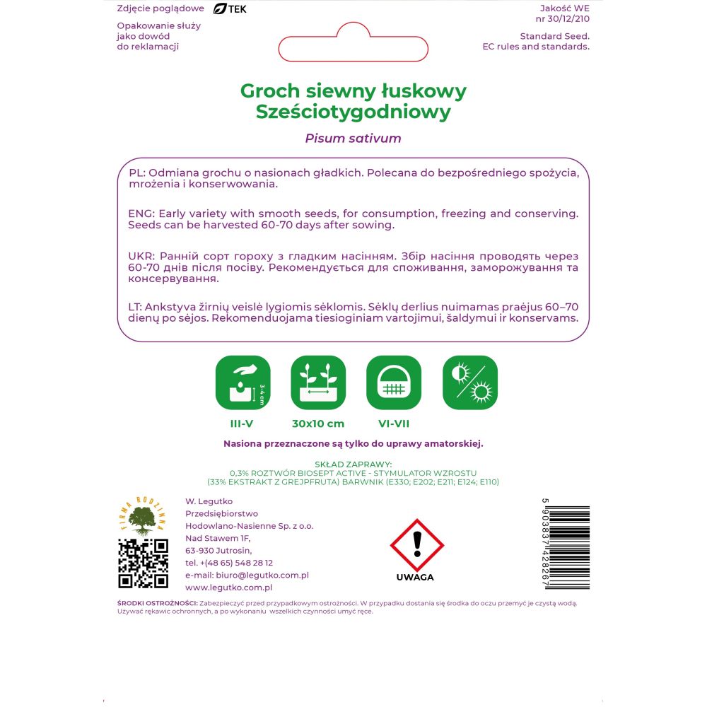 Groch siewny łuskowy - Pisum sativum - Sześciotygodniowy - 40.00g - NI