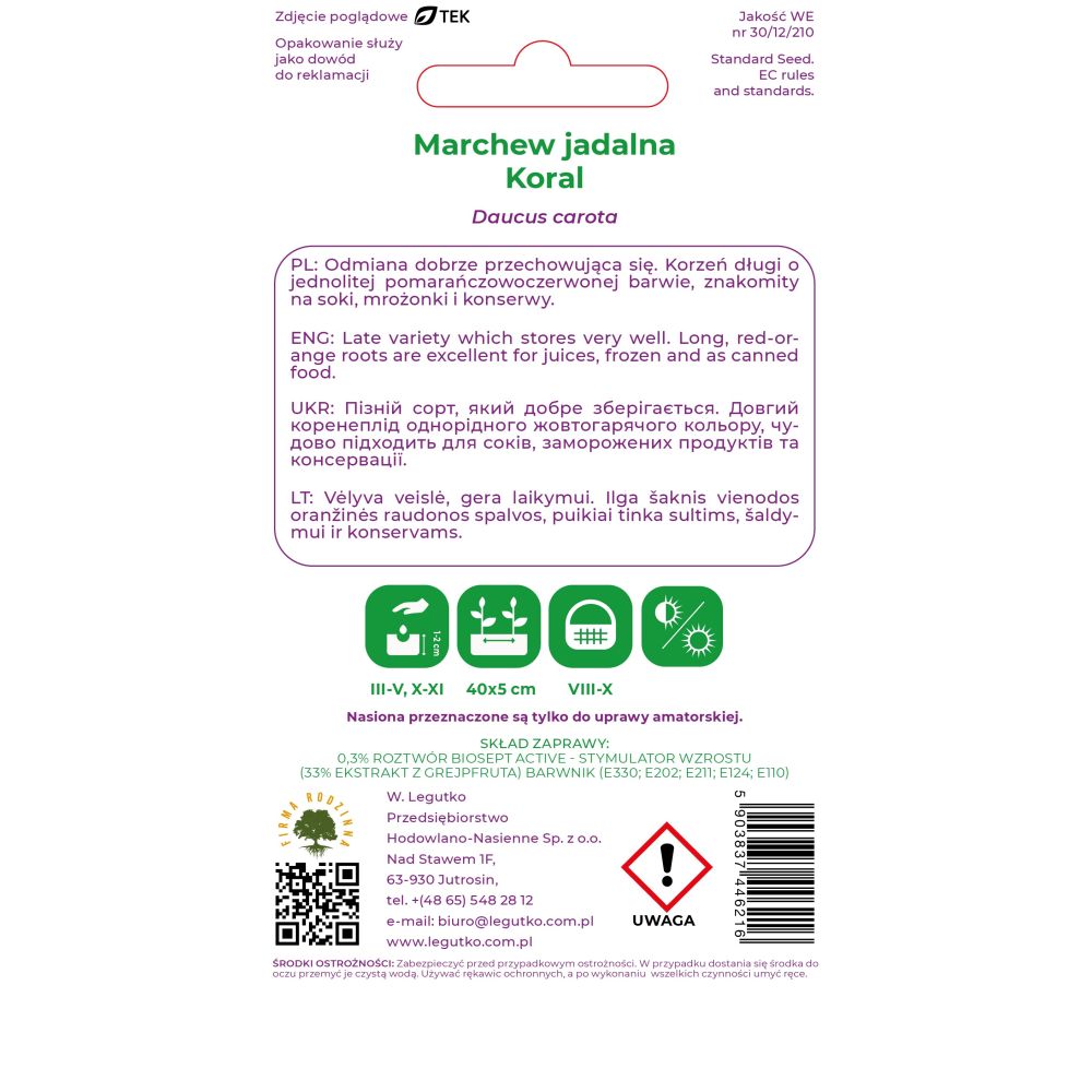 Marchew Koral 5g nasiona zaprawiane