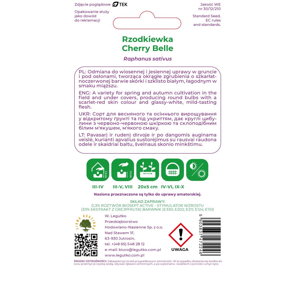 Odmiana do wiosennej i jesiennej uprawy w gruncie i pod osłonami. Rośliny tworzą duże, okrągłe zgrubienia o szkarłatnoczerwonej barwie skórki. Miąższ szklistobiały, nie wykazuje skłonności do parcenia. Na zbiór wiosenny, nasiona wysiewać od początku marca do końca kwietnia, na zbiór jesienny w sierpniu. Rozstawa rzędów 10-20 cm. Unikać świeżego obornika. Może być uprawiana jako przed-, śród- i poplon.