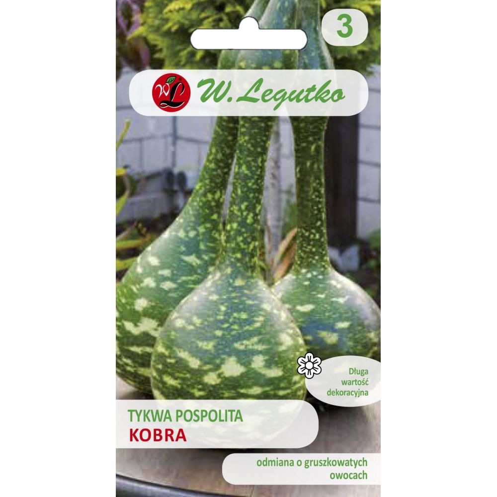 Roślina jednoroczna o pędach długości 2-2,5 m, tworząca gruszkowate owoce, barwy zielonej z białymi naciekami. Ich wydłużona i nieco grubsza na końcu szyją, przypomina kobrę. Zebrane jesienią dojrzałe owoce zachowują wartość dekoracyjną do późnej wiosny, stanowiąc atrakcyjny element zdobniczy w pomieszczeniach. Wysiew nasion w kwietniu najlepiej pod osłony do doniczek o średnicy 8-10 cm lub na początku maja bezpośrednio na miejsce stałe, na głębokość 2-3 cm, po 2-3 nasiona w jednym miejscu. Uprawiać przy podporach, w odkrytym gruncie lub tunelu foliowym w rozstawie 80-100 cm. Rośliny wymagają żyznej, ciepłej, wilgotnej gleby oraz słonecznego, osłoniętego przed wiatrem stanowiska.