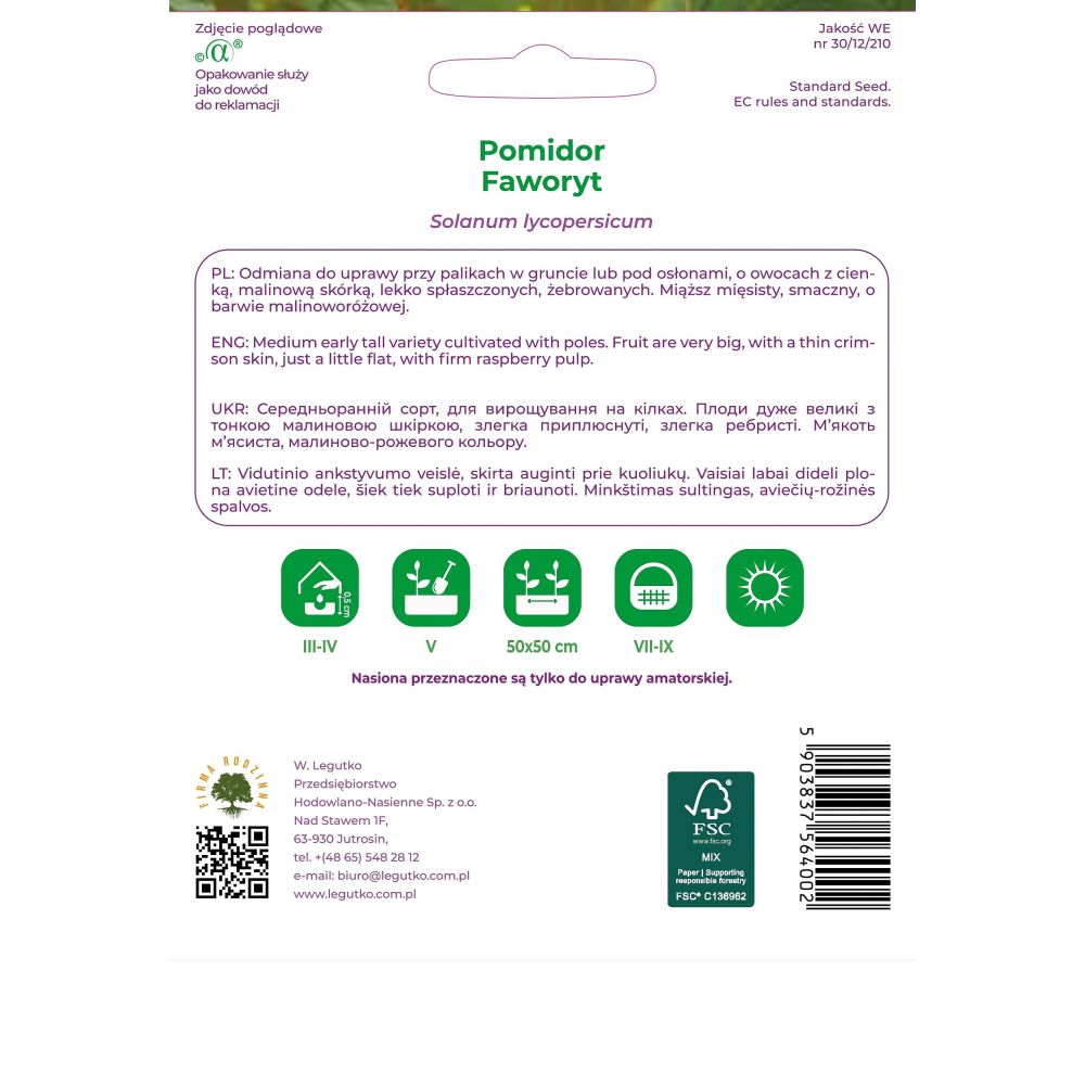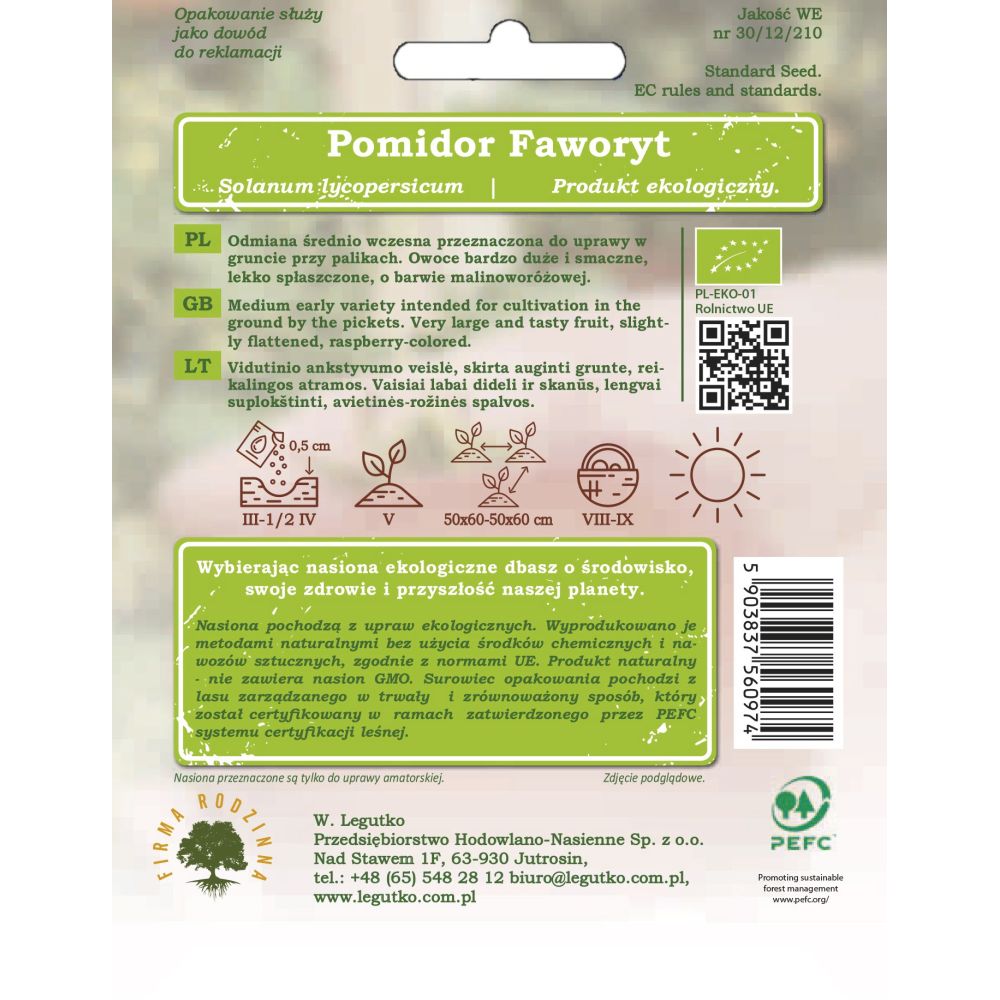 Pomidor gruntowy wysoki Faworyt BIO- Solanum lycopersicum - różowy - opakowanie zawiera 0,2g nasion
