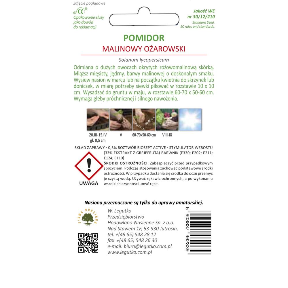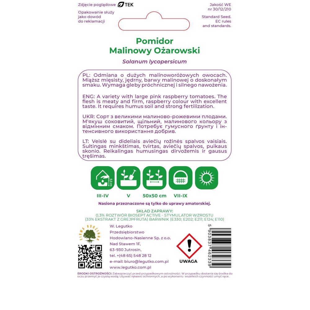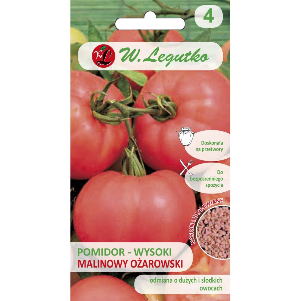 Pomidor gruntowy wysoki Malinowy Ożarowski - Solanum lycopersicum - malinowy - opakowanie zawiera 0,5g nasion zaprawianych