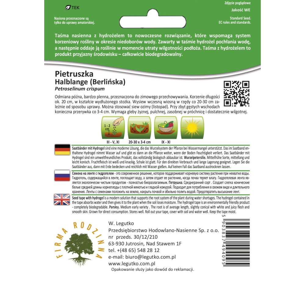 Taśmy - Pietruszka z hydrożelem - Petroselinum crispum - Halblange - 6m