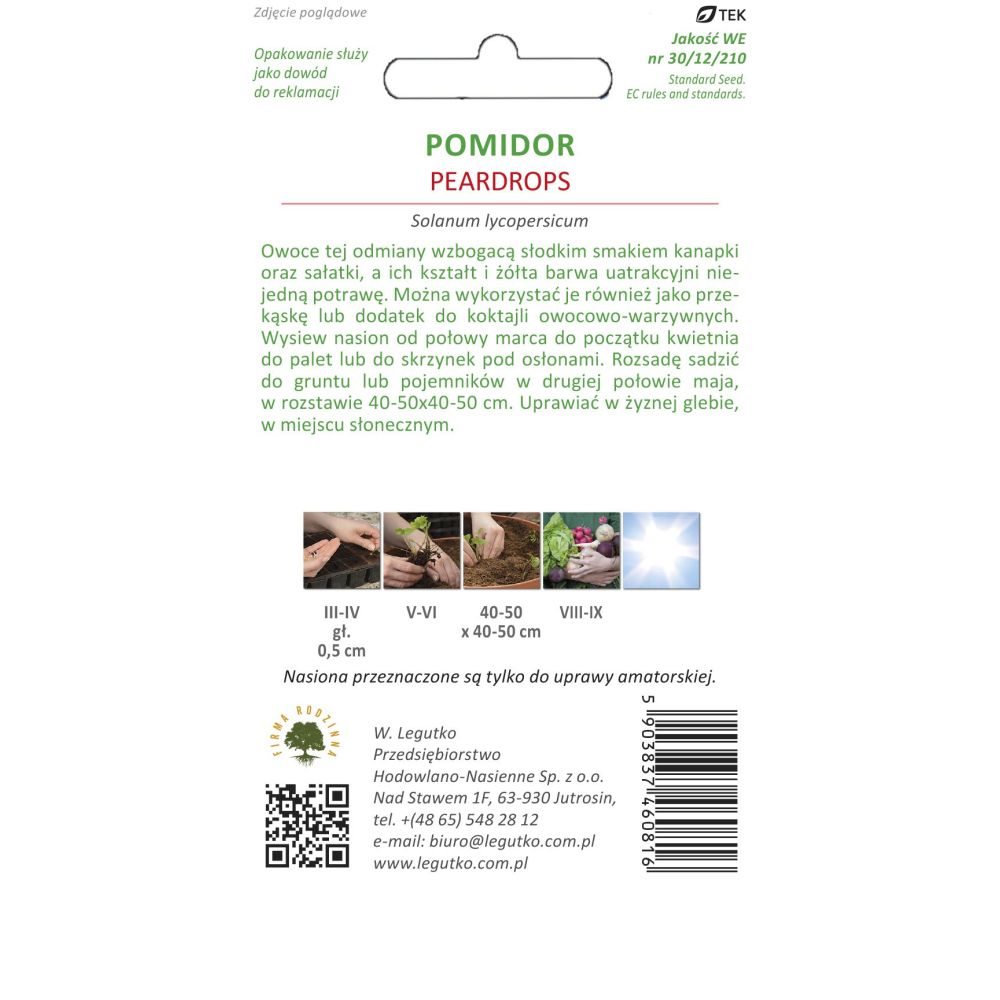Pomidor gruntowy karłowy wiotkołodygowy Peardrops - Solanum lycopersicum - żółty - opakowanie zawiera 0,3g nasion