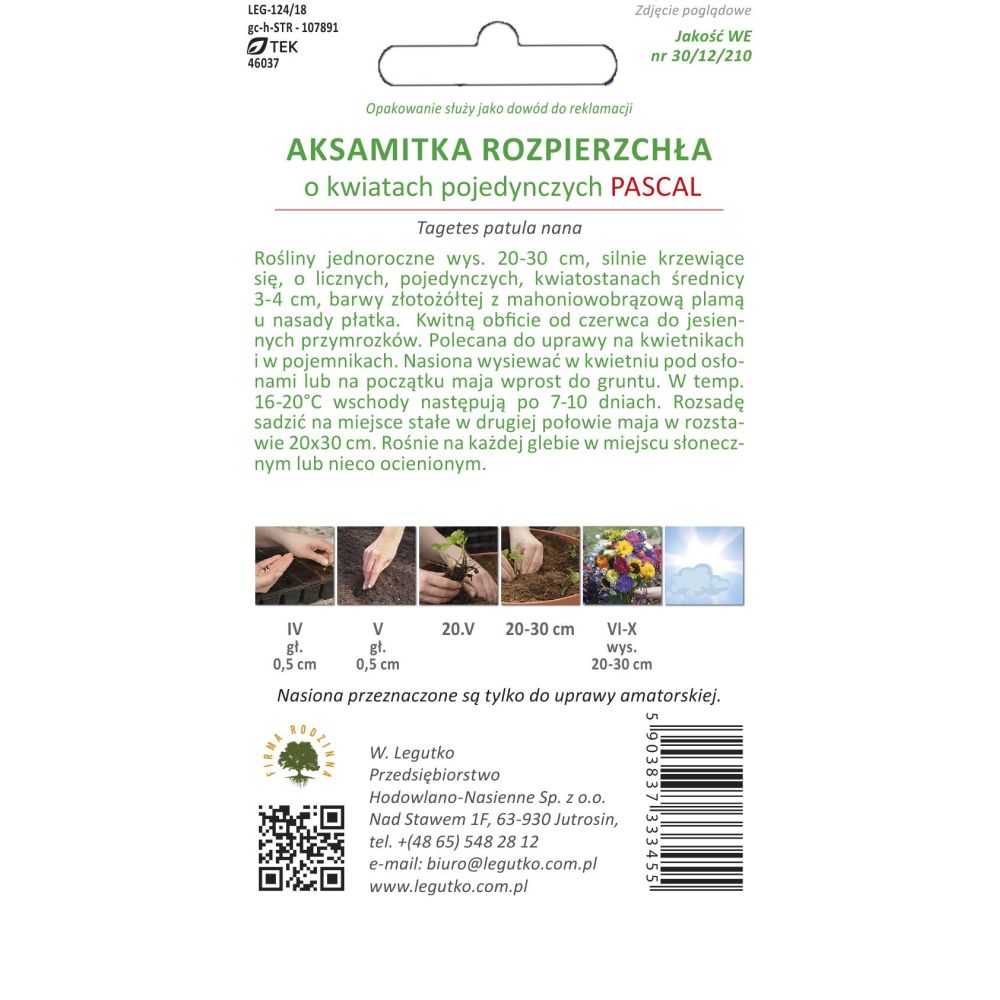 Aksamitka rozpierzchła - Tagetes patula nana - Pascal - żółty - 1.00g