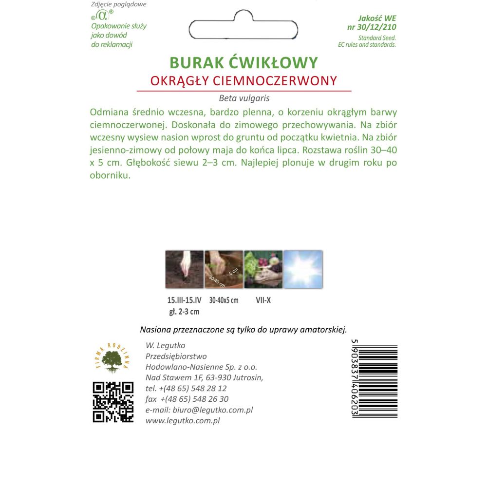 Odmiana średnio wczesna, bardzo plenna, o korzeniu okrągłym barwy ciemnoczerwonej. Doskonała do zimowego przechowywania. Na zbiór wczesny wysiew nasion wprost do gruntu od początku kwietnia. Na zbiór jesienno-zimowy od połowy maja do końca lipca. Rozstawa roślin 30-40 x 5 cm. Głębokość siewu 2-3 cm. Najlepiej plonuje w drugim roku po oborniku.