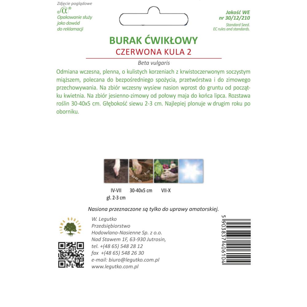Odmiana wczesna, plenna, o kulistych korzeniach z krwistoczerwonym soczystym miąższem, polecana do bezpośredniego spożycia, przetwórstwa i do zimowego przechowywania. Na sprzęt wczesny wysiew nasion wprost do gruntu od początku kwietnia. Na sprzęt jesienno-zimowy od połowy maja do końca lipca. Rozstawa roślin 30-40 x 5 cm. Głębokość siewy 2-3 cm. Najlepiej plonuje w drugim roku po oborniku.